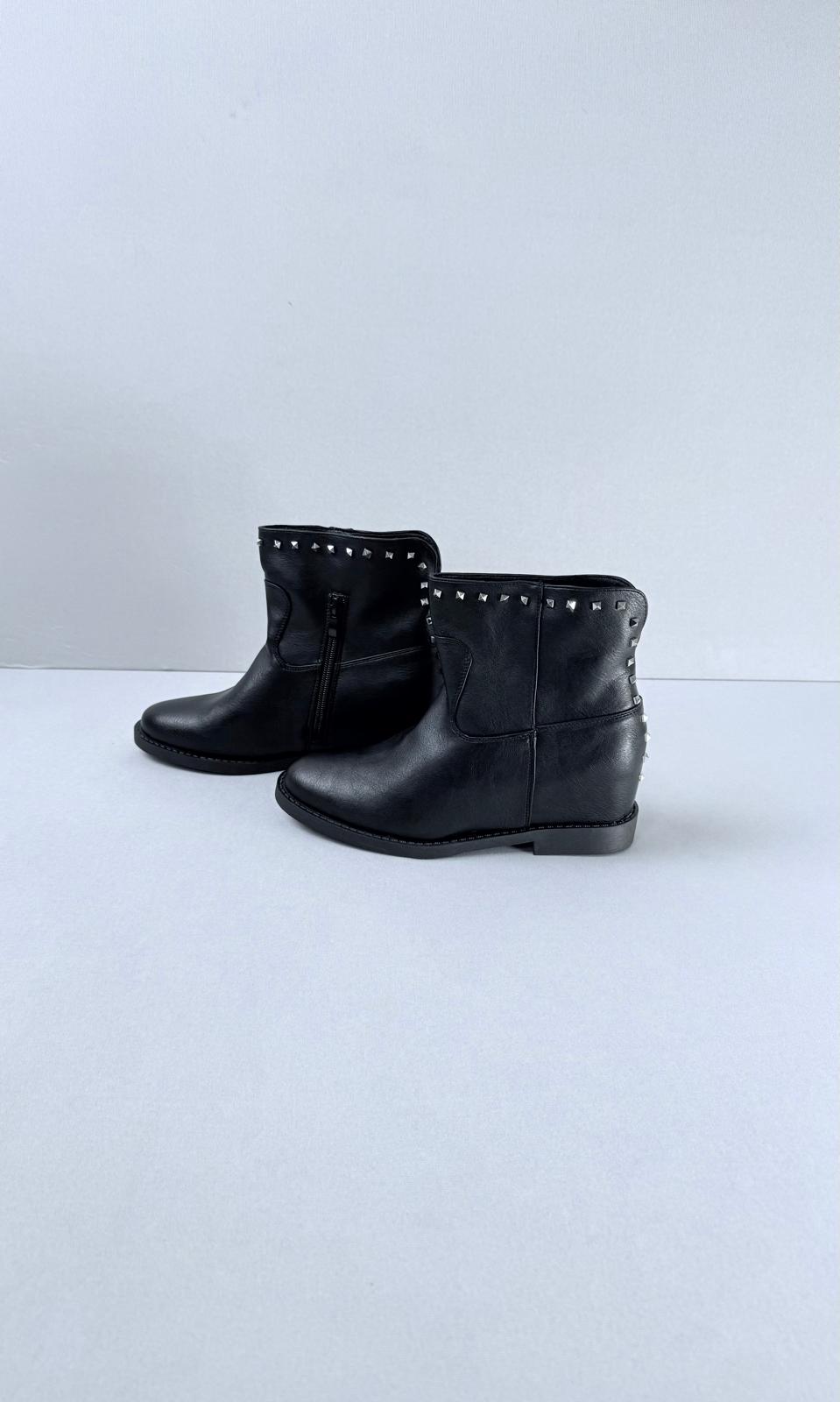 El botín tiene un tacón de 7 centímetros, proporcionando una altura adicional.