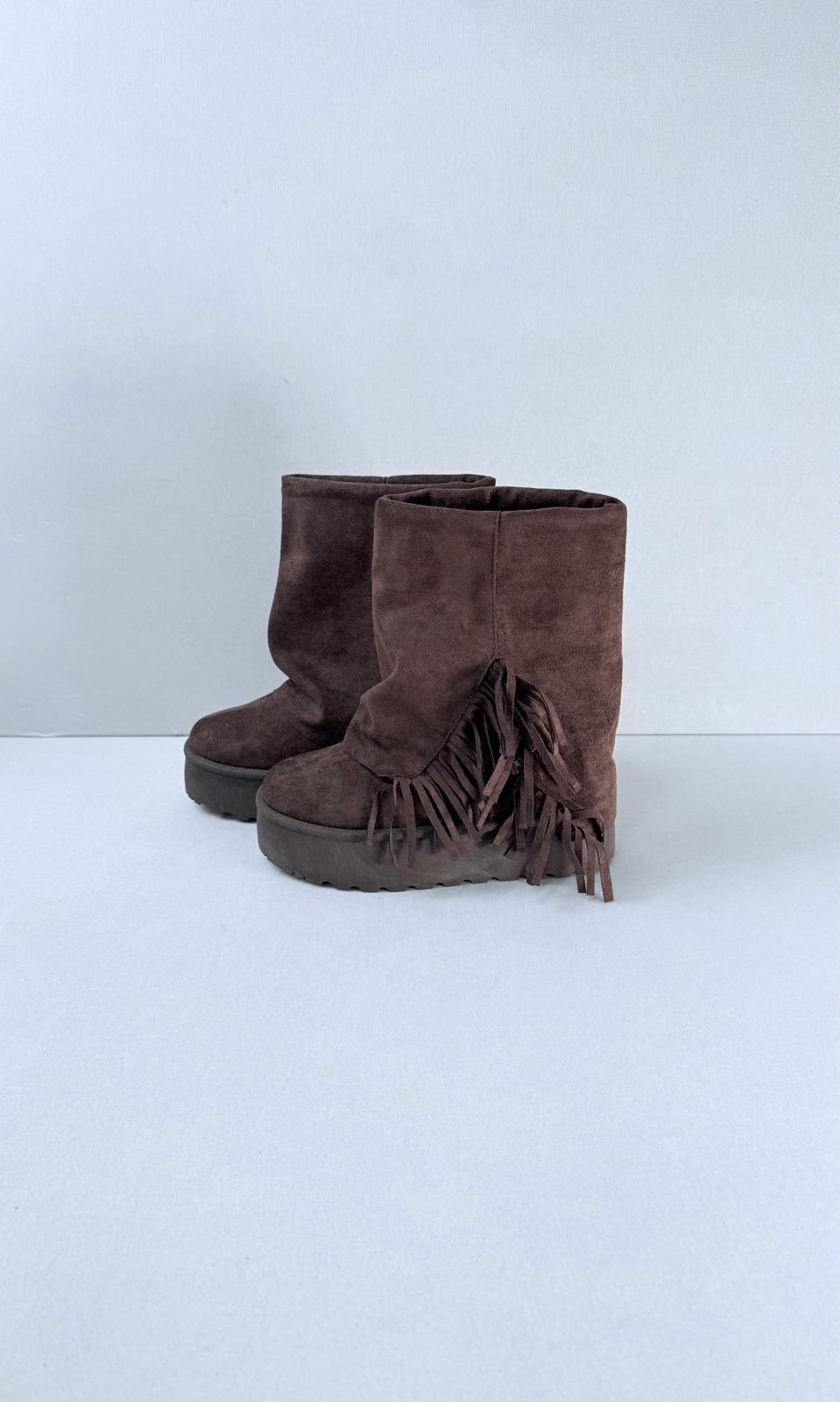 La bota presenta flecos que añaden un toque único.