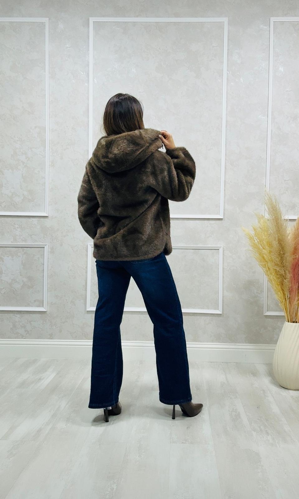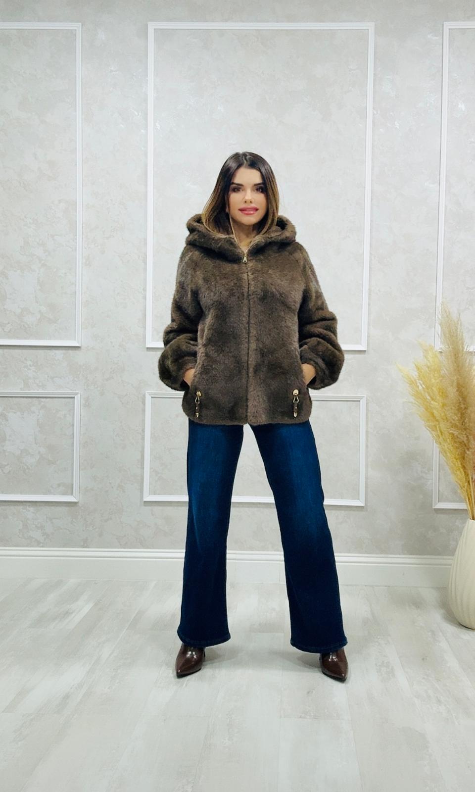 La capucha y el forro de pelo por fuera proporcionan calor y comodidad.