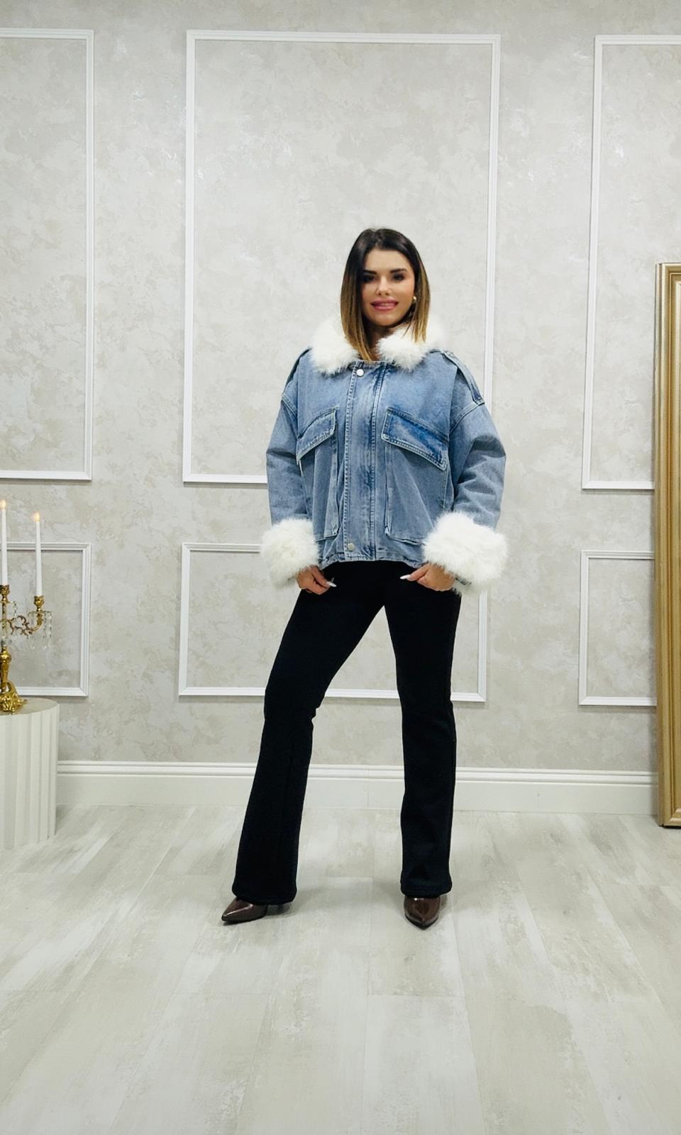 El abrigo tiene diseño de pelo en el cuello, las muñecas y por interior.
