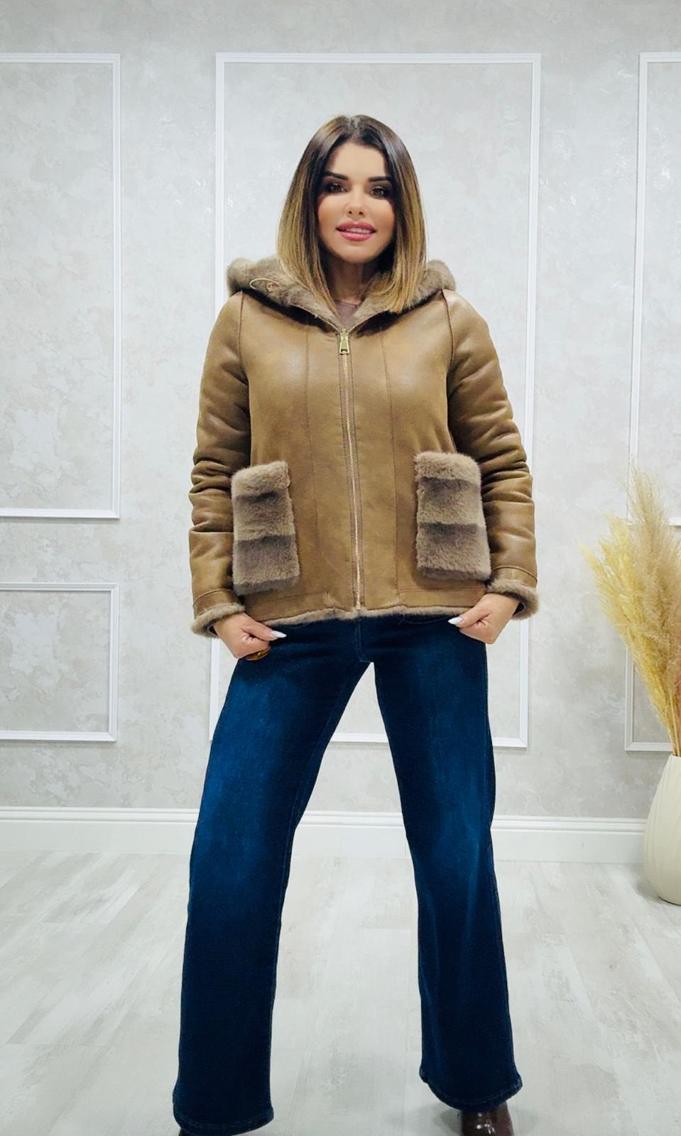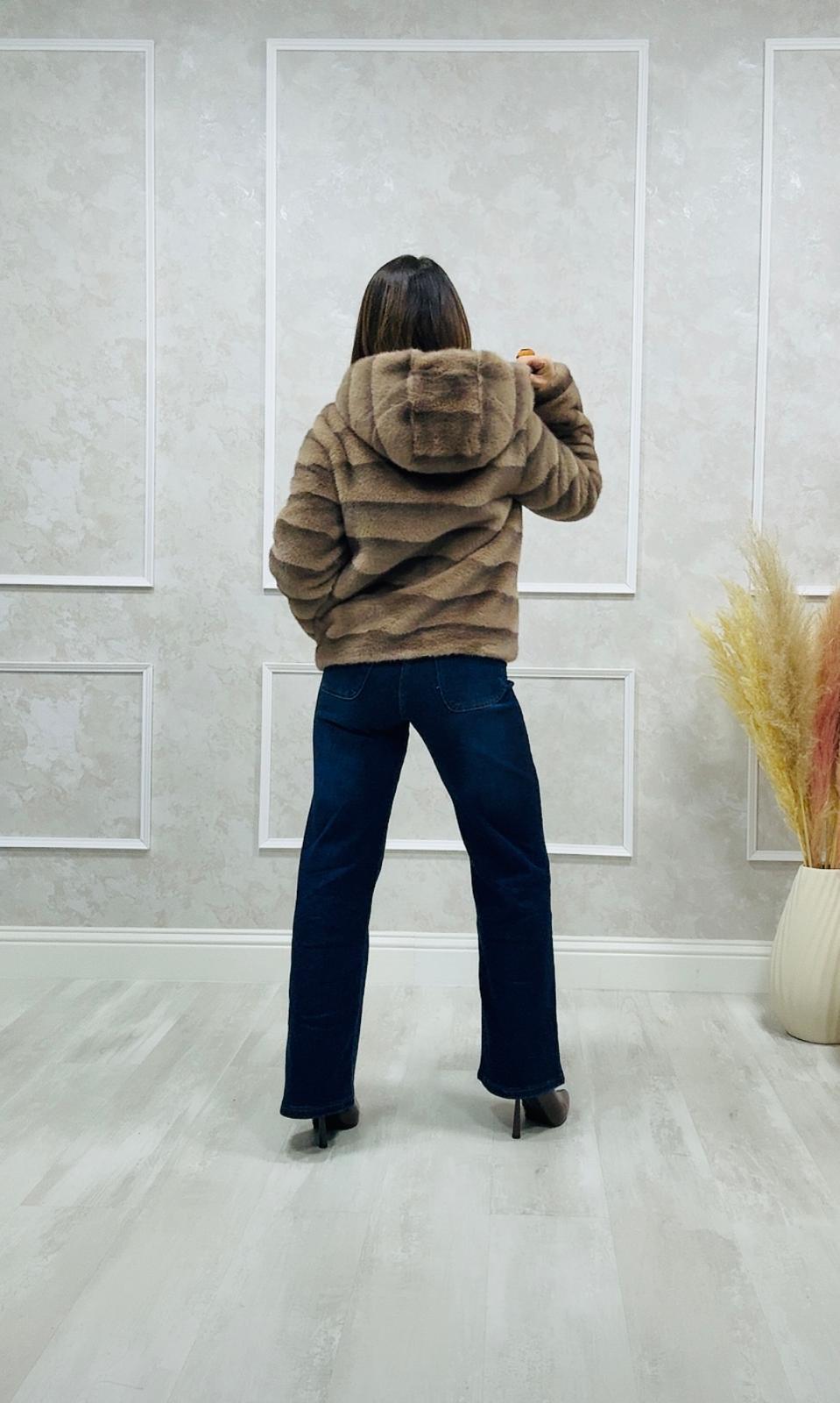 Está completamente forrada de pelo, asegurando calidez y confort.
