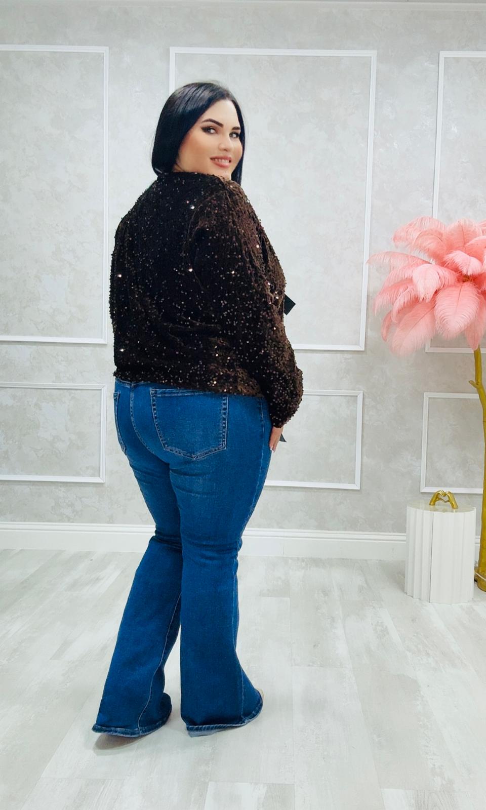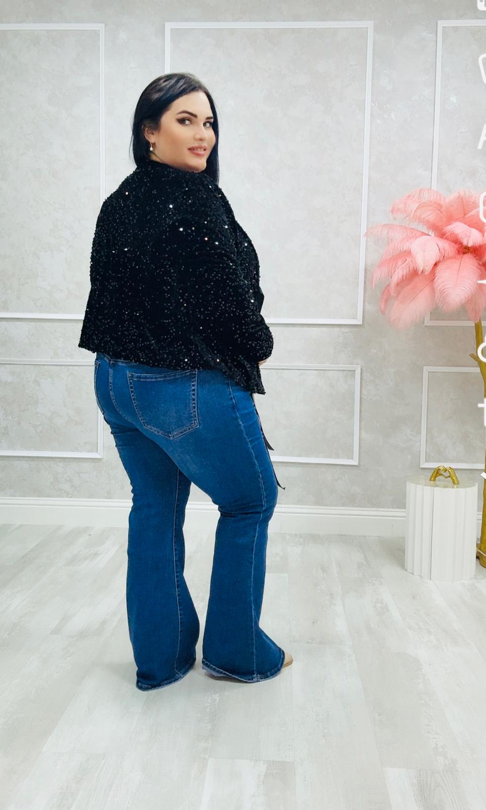 Total lentejuela. Este detalle añade un toque elegante al blazer.
