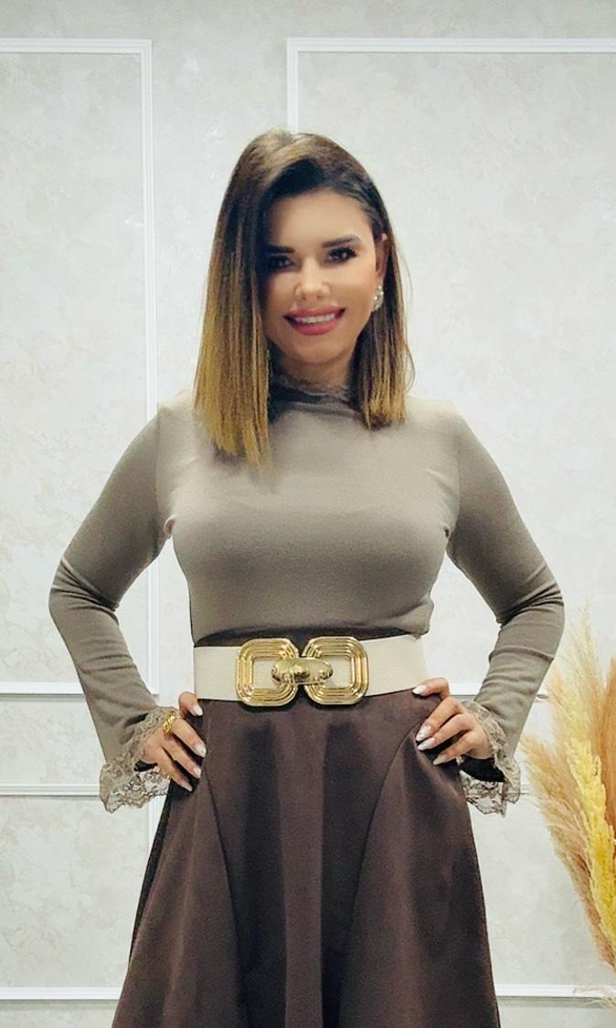 Un bonito cinturón, con la decoración de 2 hebillas en dorado.