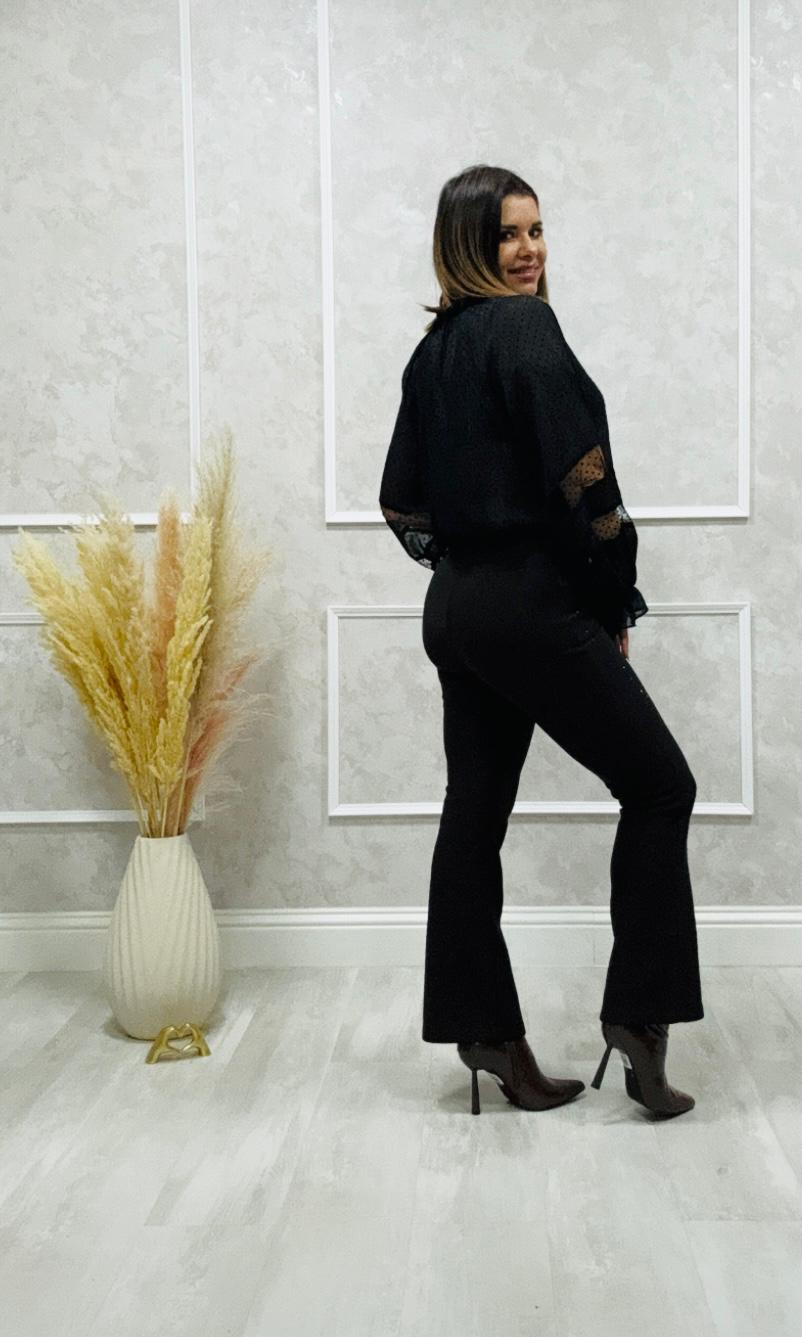 Incluye diseño de pedrería, añadiendo un toque de elegancia al look.