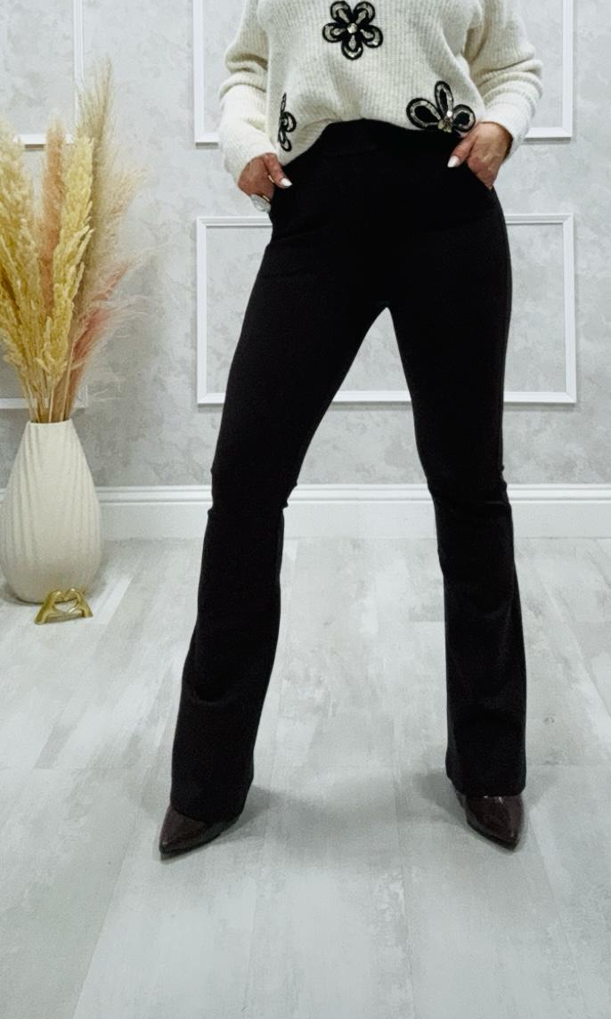 Tela con elasticidad, el pantalón tiene goma con cordón en la cintura y bolsillos laterales