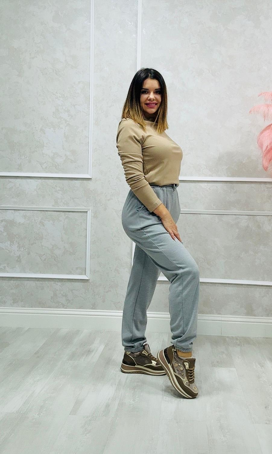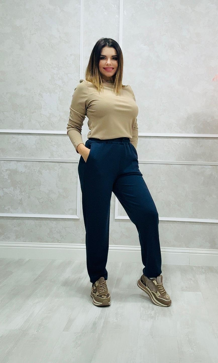 El pantalón tiene goma con cordón en la cintura y goma en la parte inferior.