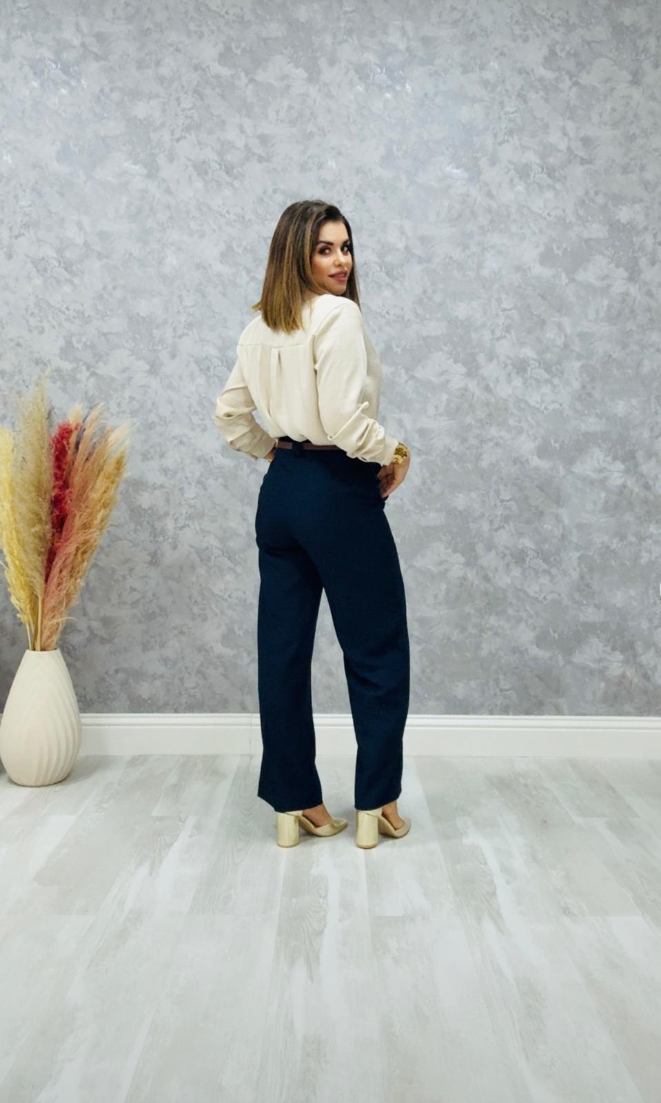 Tela no elástica, el pantalon lleva goma en la parte trasera de la cintura y bolsillos laterales, incluye cinturón