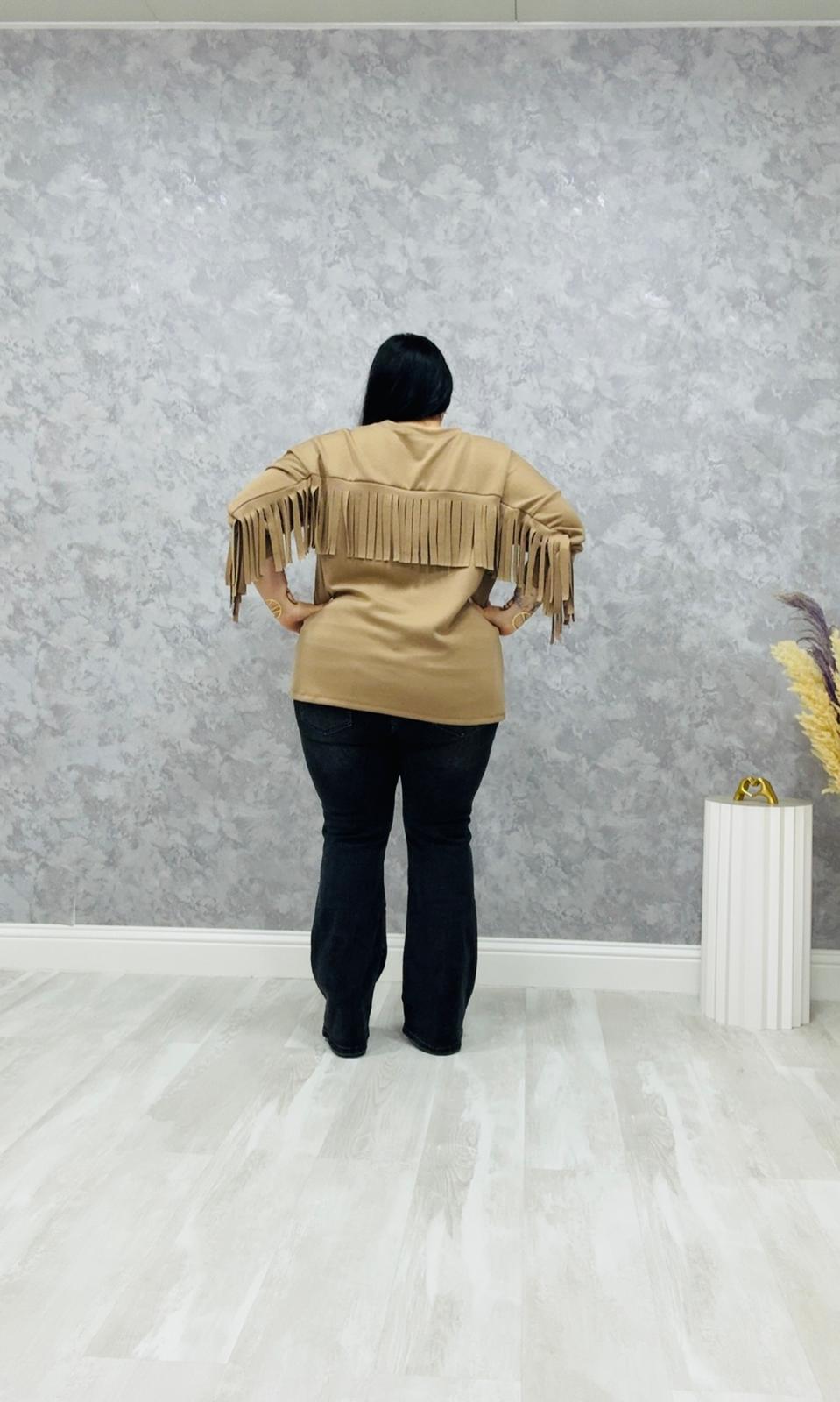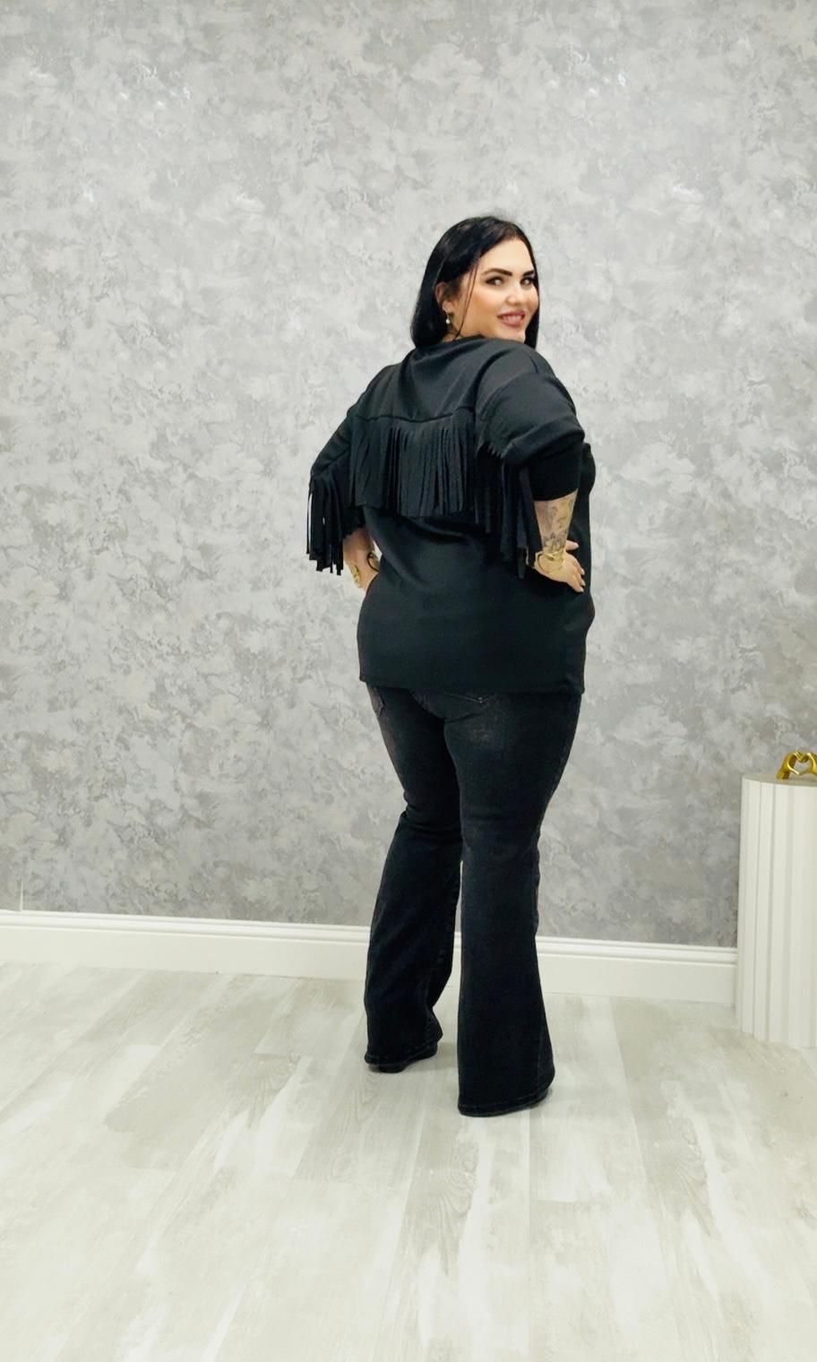Tiene un diseño de flecos en la parte trasera, añade un toque único al look.