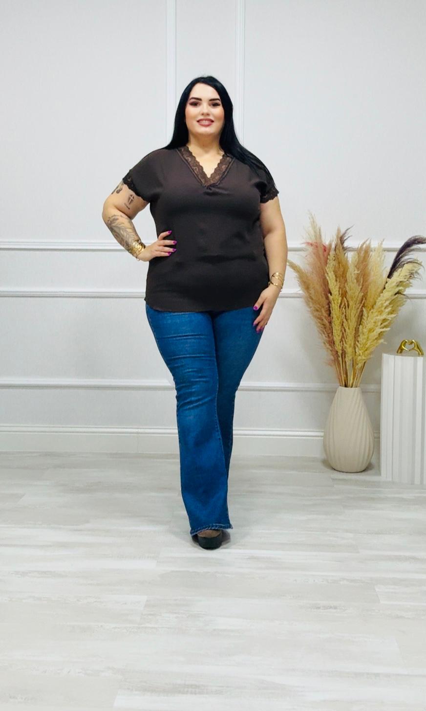 Tela fina y ligera con detalles de encaje cuello y mangas