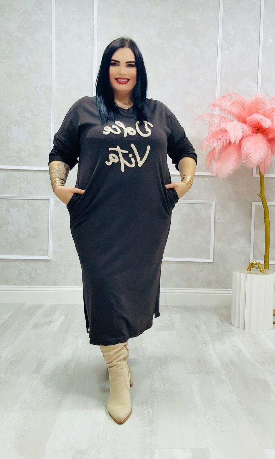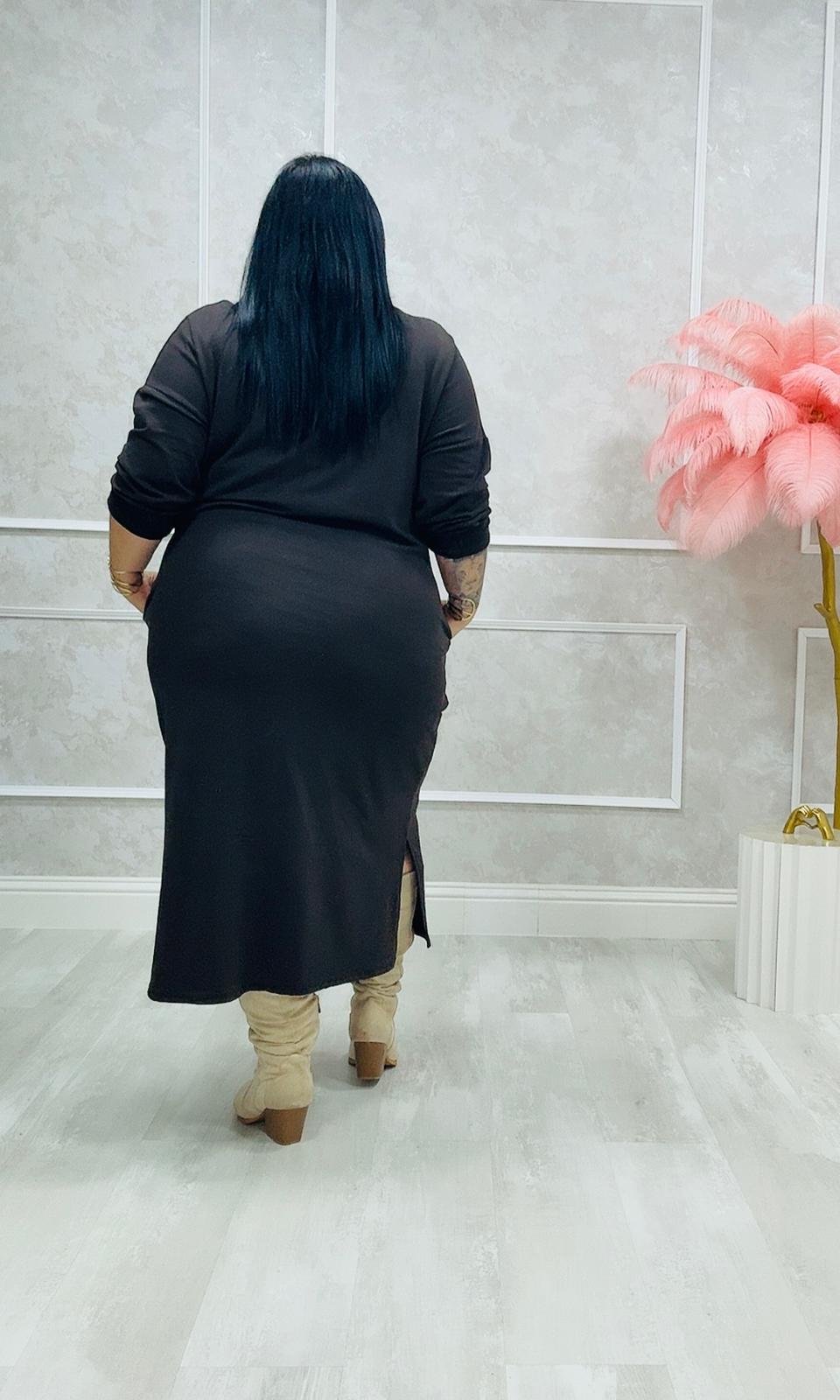 El vestido incluye bolsillos laterales para mayor funcionalidad.