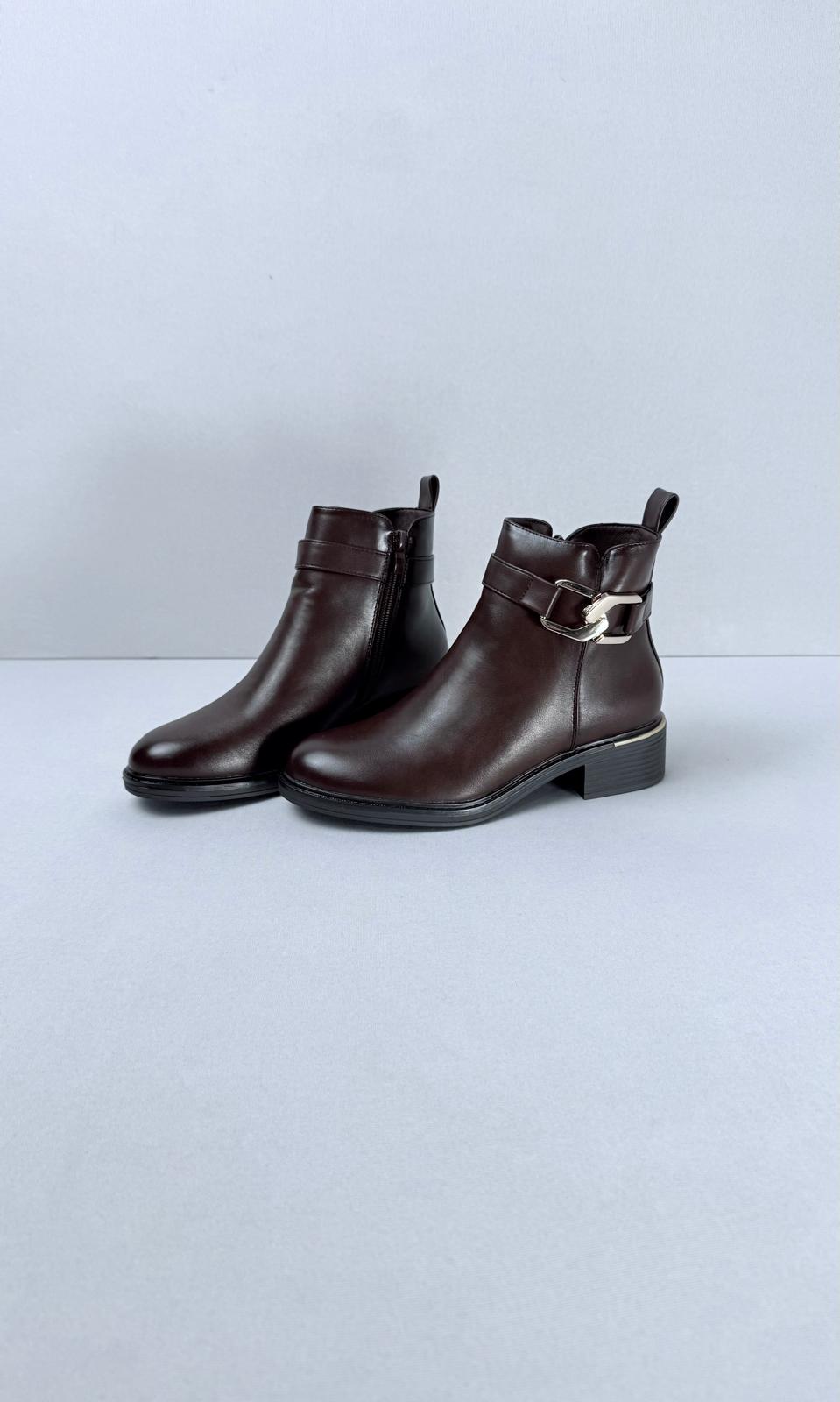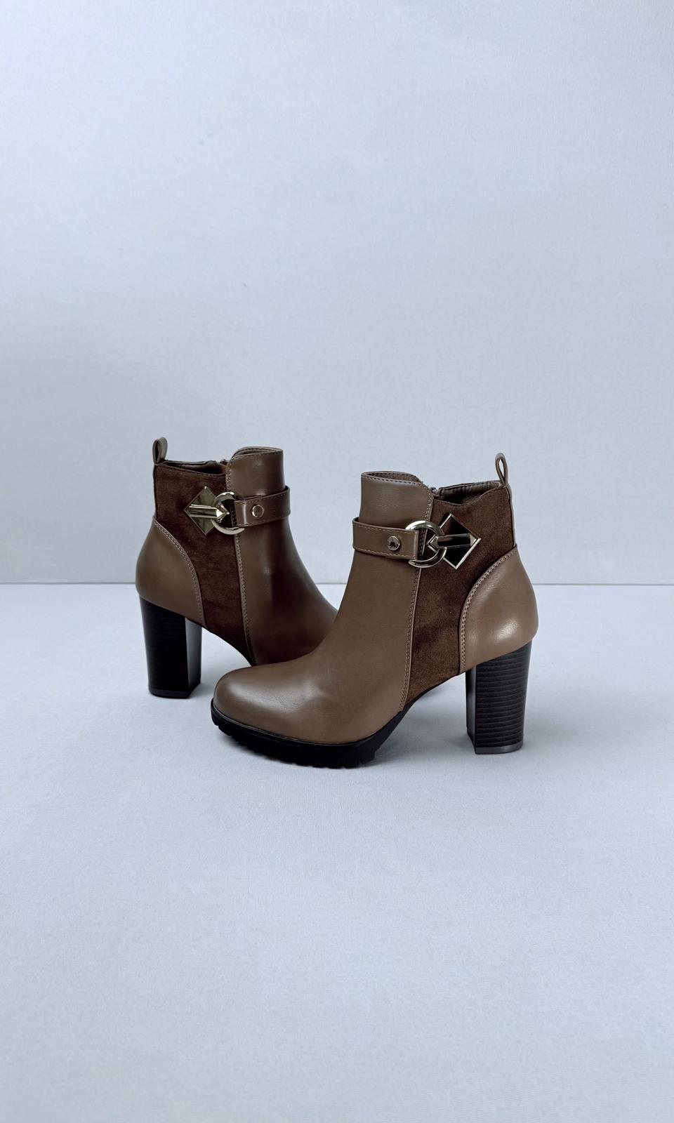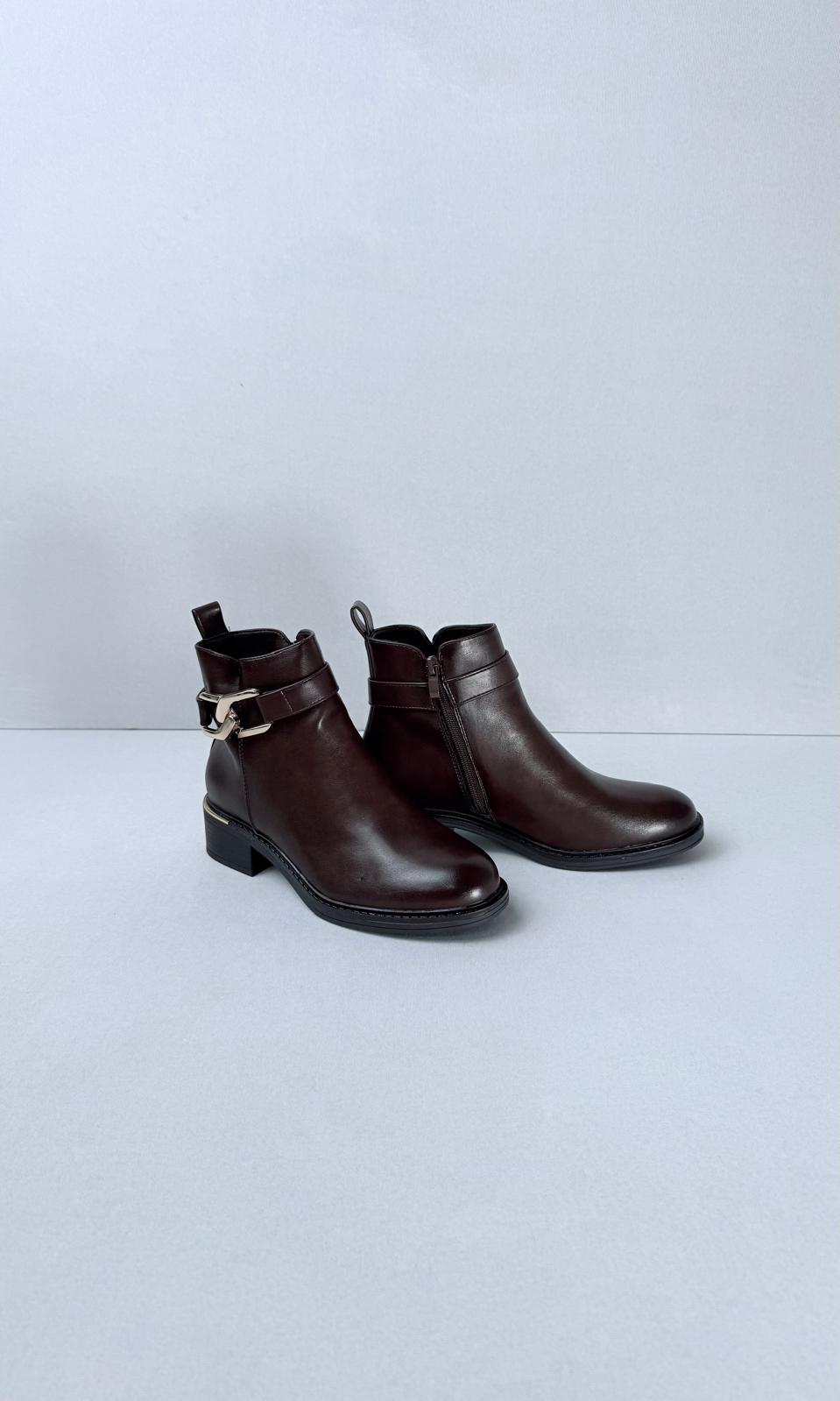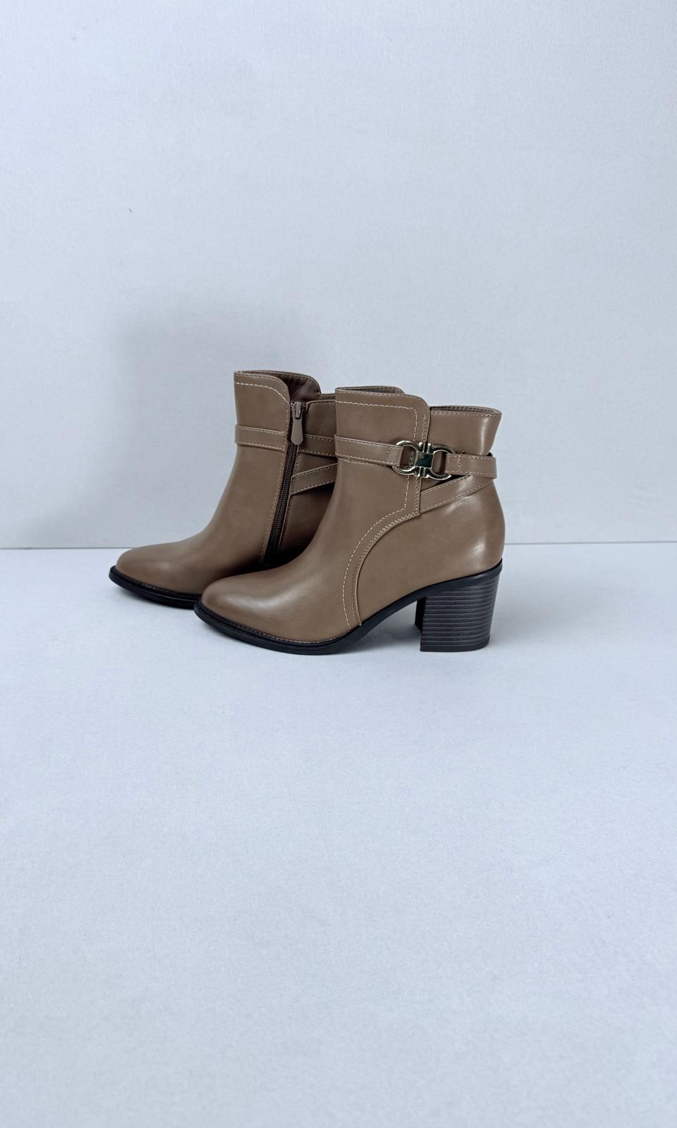 La decoración en forma de correa añade un toque estético a los botines.