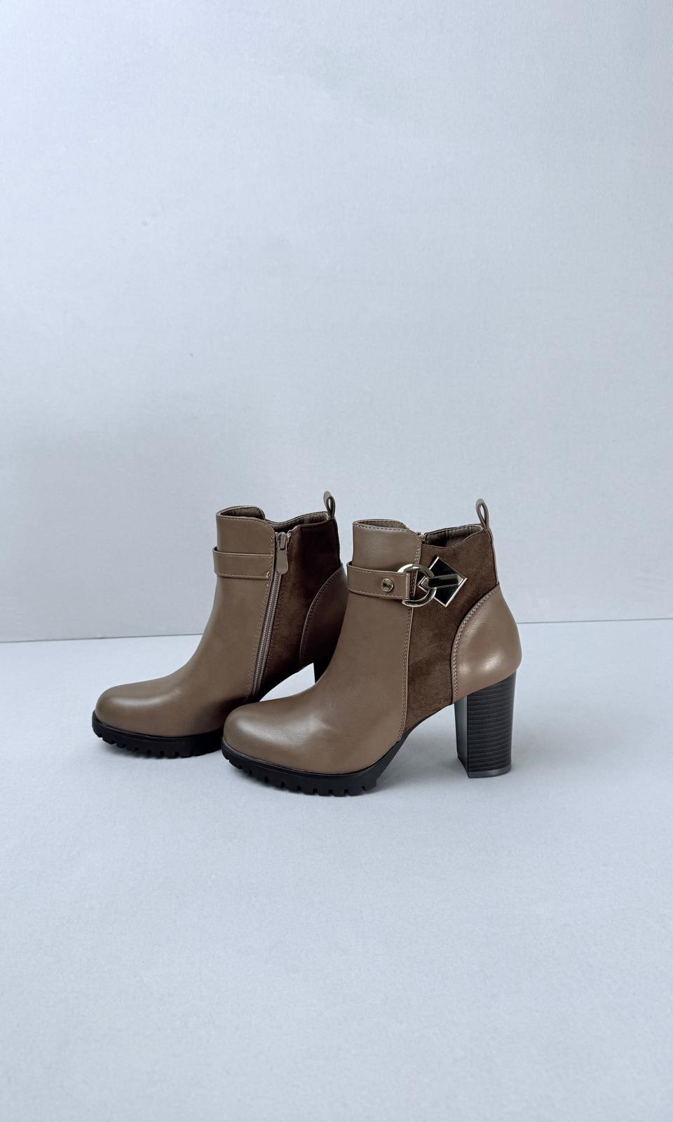 El botín tiene un tacón de 8 centímetros, proporcionando una altura adicional.